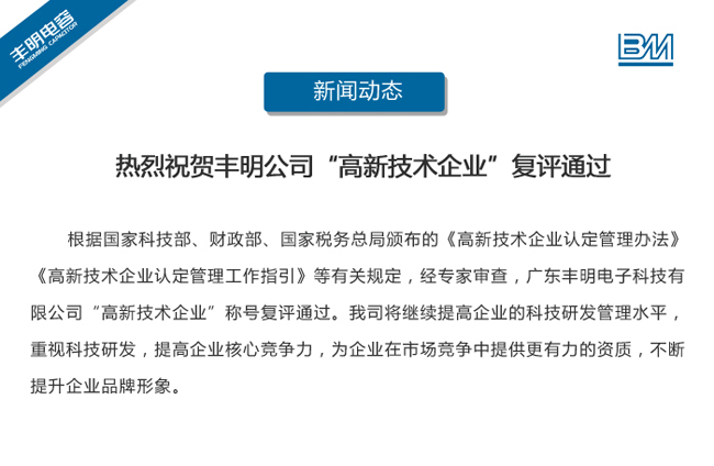 熱烈祝賀豐明公司“高新技術(shù)企業(yè)”復(fù)評通過,我司將繼續(xù)提高企業(yè)的科研管理水平!