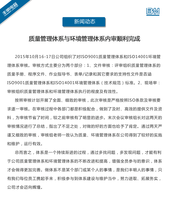 質(zhì)量管理體系與環(huán)境管理體系內(nèi)審順利完成