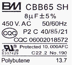 :UL認(rèn)證標(biāo)志,下面的數(shù)字是BM電容UL認(rèn)證的證書編號(hào)。
